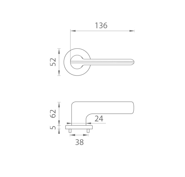 Rozetová klika na interiérové dveře s kulatou rozetou je vyrobena z materiálů vysoké kvality - zamak a je povrchově upravena. Rozeta má rozměr 52 mm a tloušťku jen 5 mm. Minimalistický design rozety s vysokou stabilitou kliky na dveřích působí jemně, a tím ponechává prostor pro vyniknutí designu samotné kliky.