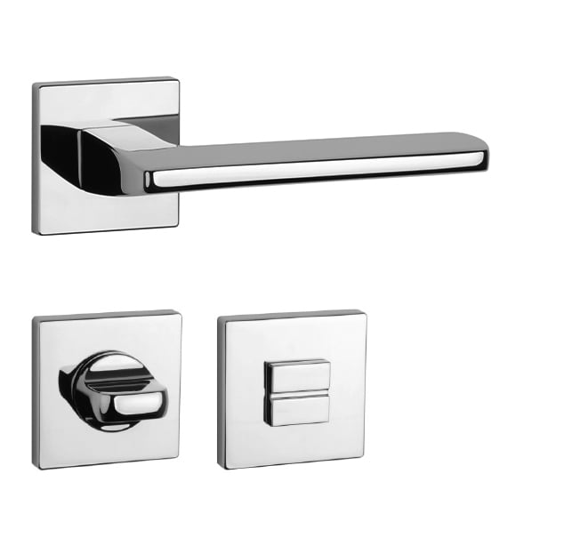 Rozetová klika na interiérové dveře s hranatou rozetou je vyrobena z materiálů vysoké kvality - zamak a je povrchově upravena. Rozeta má rozměr 52x52 mm a tloušťku jen 7 mm. Minimalistický design rozety s vysokou stabilitou kliky na dveřích působí jemně, a tím ponechává prostor pro vyniknutí designu samotné kliky.