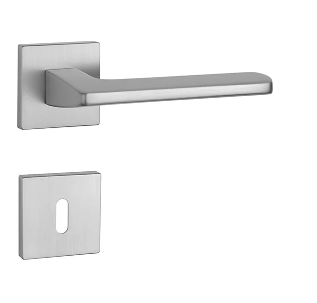 Rozetová klika na interiérové dveře s hranatou rozetou je vyrobena z materiálů vysoké kvality - zamak a je povrchově upravena. Rozeta má rozměr 52x52 mm a tloušťku jen 7 mm. Minimalistický design rozety s vysokou stabilitou kliky na dveřích působí jemně, a tím ponechává prostor pro vyniknutí designu samotné kliky.