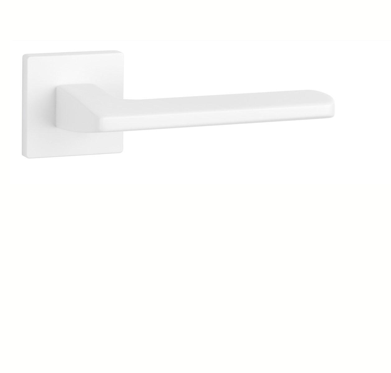 Rozetová klika na interiérové dveře s hranatou rozetou je vyrobena z materiálů vysoké kvality - zamak a je povrchově upravena. Rozeta má rozměr 52x52 mm a tloušťku jen 7 mm. Minimalistický design rozety s vysokou stabilitou kliky na dveřích působí jemně, a tím ponechává prostor pro vyniknutí designu samotné kliky.