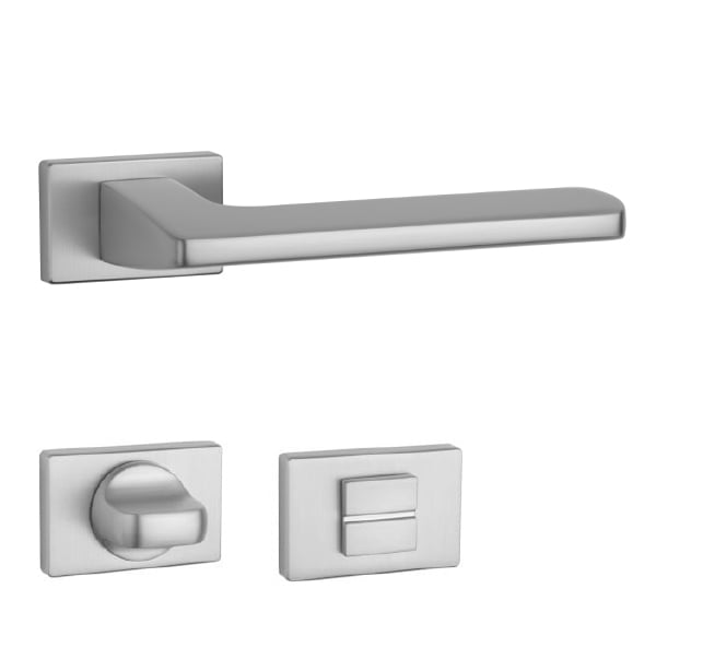 Rozetová klika na interiérové dveře s obdélníkovou rozetou je vyrobena z materiálů vysoké kvality - zamak a je povrchově upravena. Rozeta má rozměr 50 x 33 mm a tloušťku jen 7 mm. Minimalistický design rozety s vysokou stabilitou kliky na dveřích působí jemně, a tím ponechává prostor pro vyniknutí designu samotné kliky.