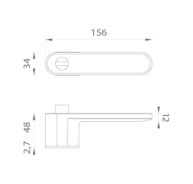 Rozeta má rozměry 48 mm x 34 mm. Je tenká jen 2,7 mm a stává se tak téměř neviditelnou součástí designu kliky.