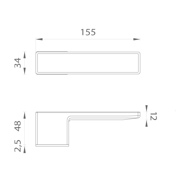 Rozeta má rozměry 48 mm x 34 mm. Je tenká jen 2,7 mm a stává se tak téměř neviditelnou součástí designu kliky.