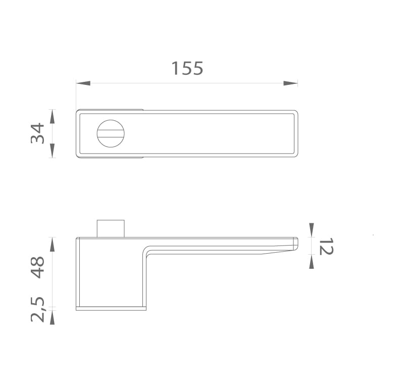 Rozeta má rozměry 48 mm x 34 mm. Je tenká jen 2,7 mm a stává se tak téměř neviditelnou součástí designu kliky.