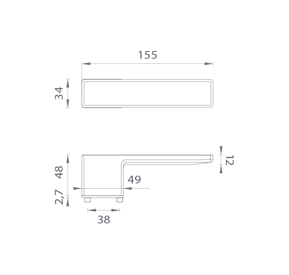 Rozeta má rozměry 48 mm x 34 mm. Je tenká jen 2,7 mm a stává se tak téměř neviditelnou součástí designu kliky.