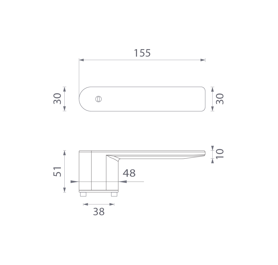 Rozeta má rozměry 50 mm x 30 mm. Je tenká jen 2,5 mm a stává se tak téměř neviditelnou součástí designu kliky.