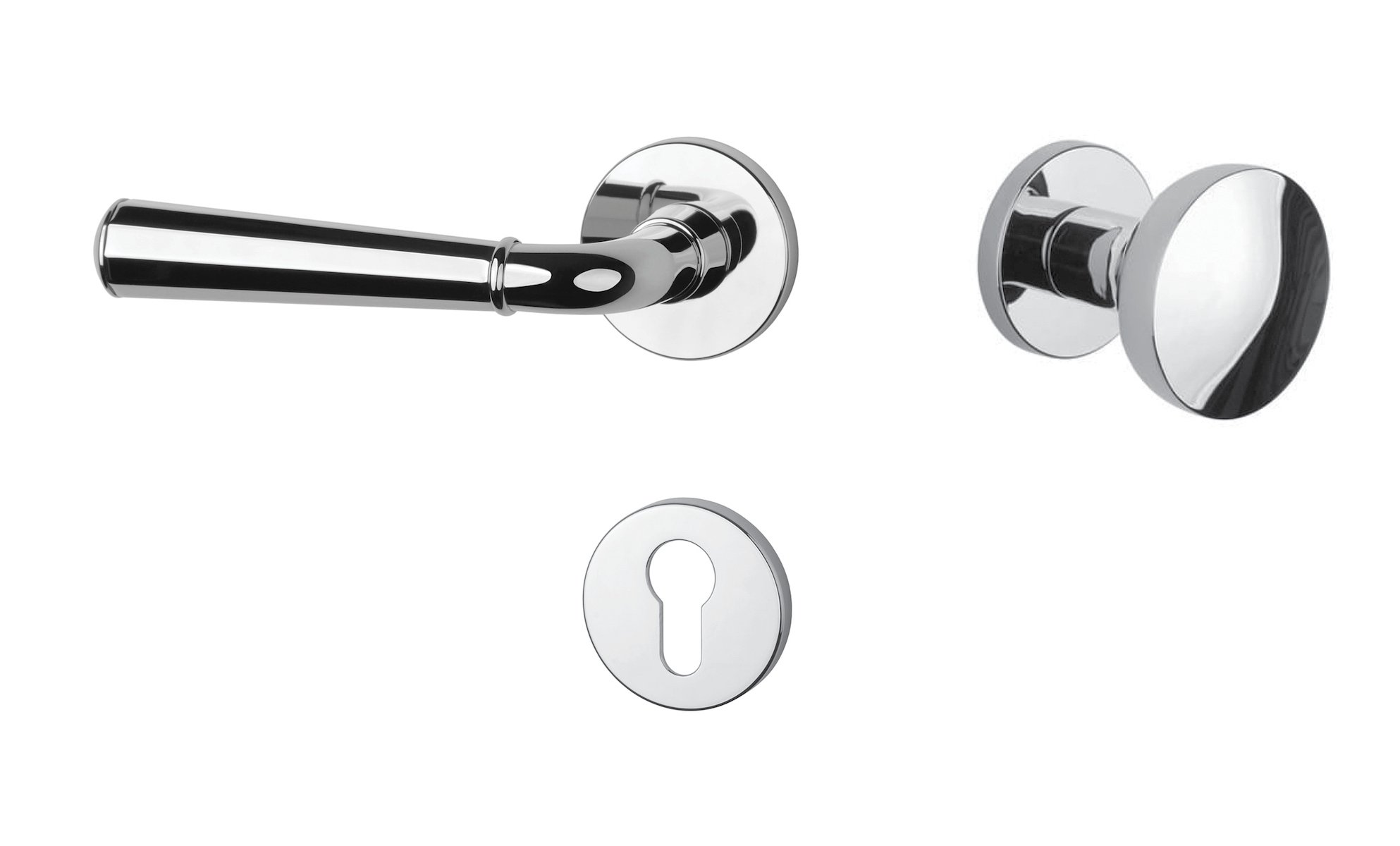 Základním materiálem použitým u klik MARIGOLD je zamak (slitina zinku) s lesklým povrchem. Kliky jsou na kulatých  rozetách s průměrem 52 mm a tloušťkou jen 7 mm.