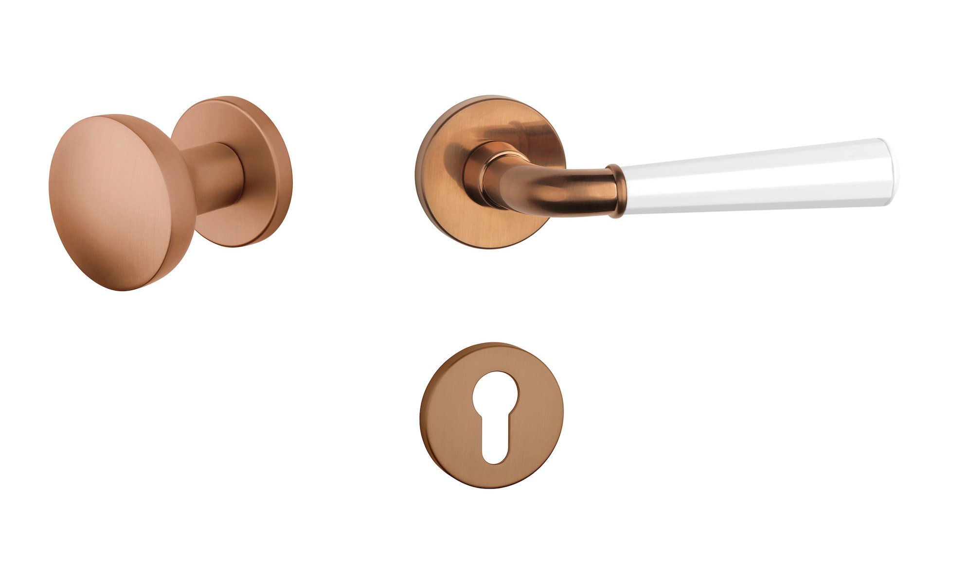 ASM - MARIGOLD 2 - R 7S CUM/WS - Měď matná / bílá matná - rozety PZ - koule/klika levá (8/8)
