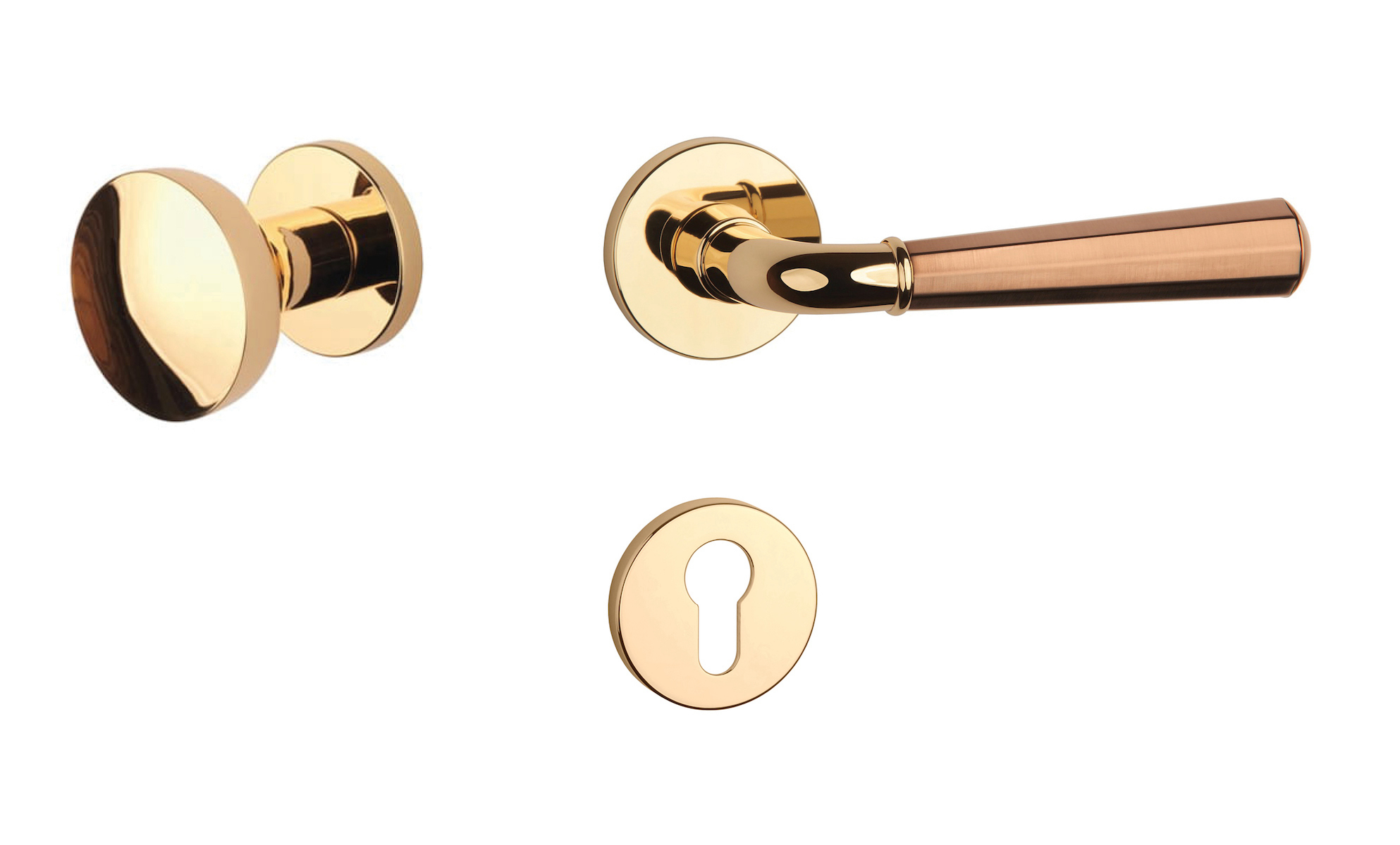 ASM - MARIGOLD 2 - R 7S OLV/CUM - Mosaz leštěná lakovaná / měď matná - rozety PZ - koule/klika pravá
