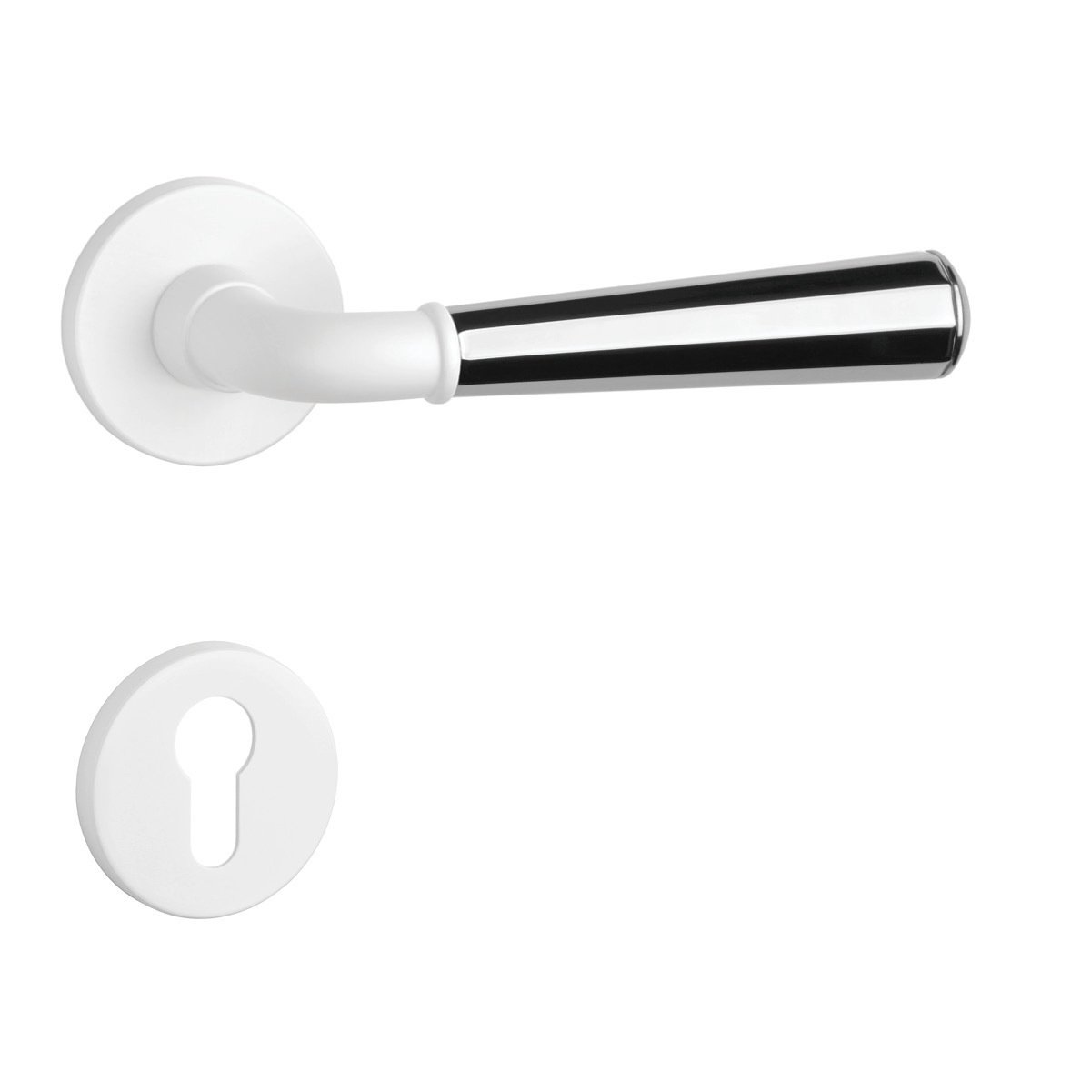 Základním materiálem použitým u klik MARIGOLD je zamak (slitina zinku) s lesklým povrchem. Kliky jsou na kulatých rozetách s průměrem 52 mm a tloušťkou jen 7 mm.