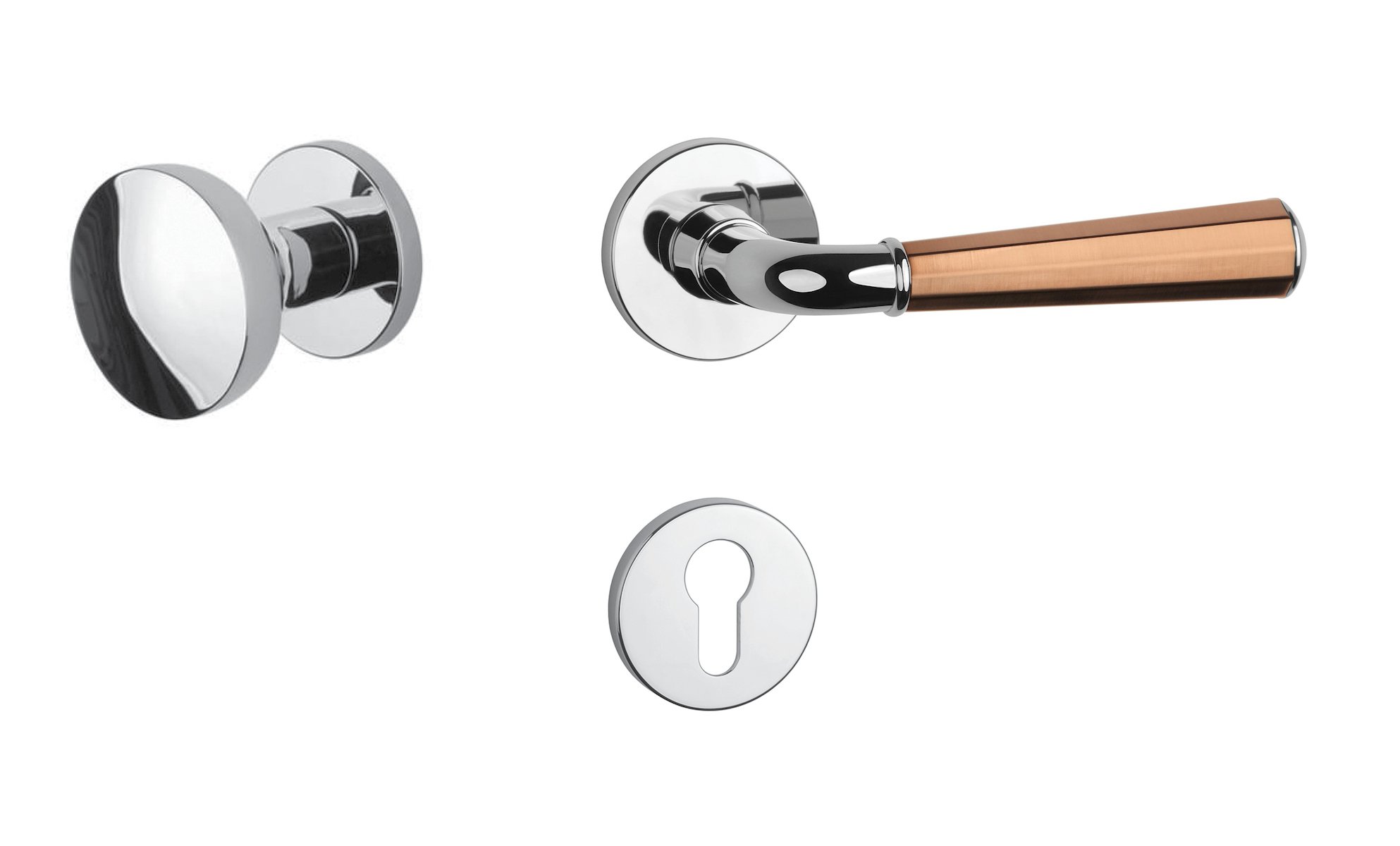 ASM - MARIGOLD 3 - R 7S OC/CUM/OC - Chrom lesklý / měď matná / chrom lesklý - rozety PZ - koule/klika levá