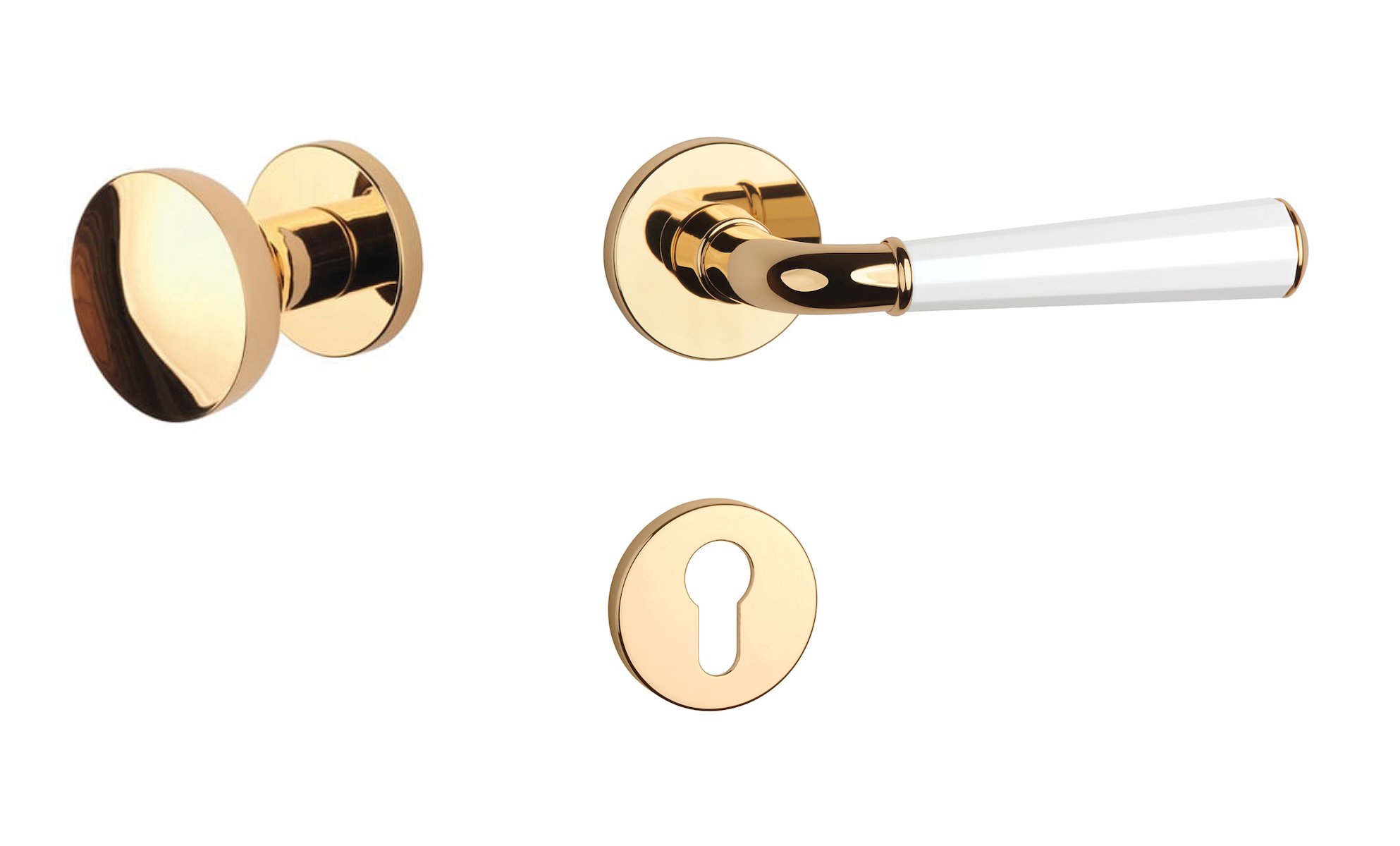 ASM - MARIGOLD 3 - R 7S OLV/WS/OLV - Mosaz leštěná lakovaná / bílá matná / mosaz leštěná lakovaná - rozety BB - klika/klika (5/8)
