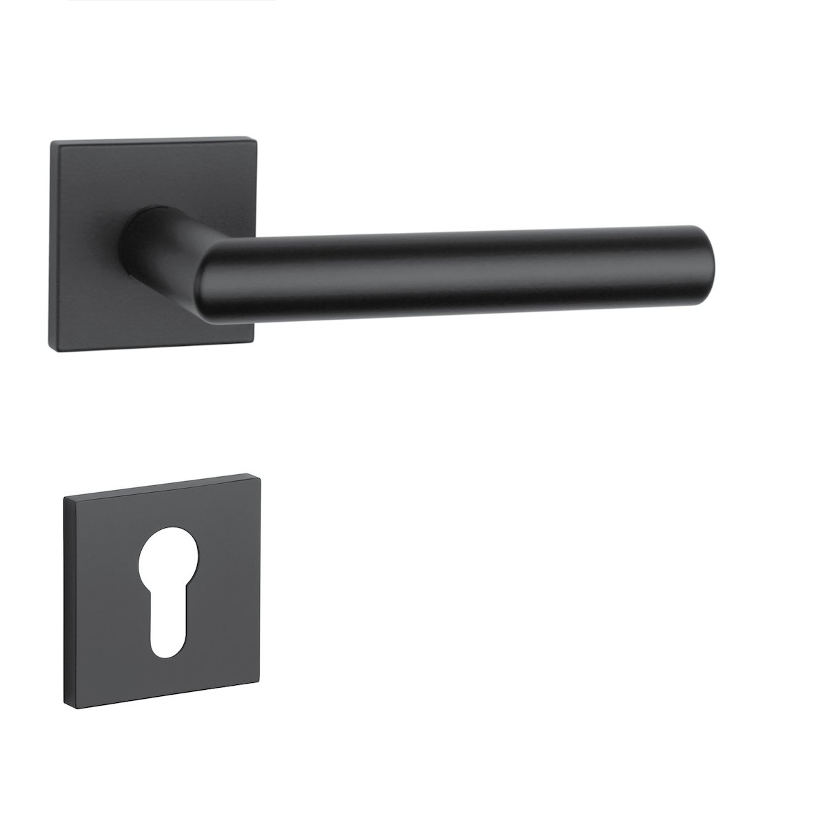 Rozetová klika na interiérové dveře s hranatou rozetou je vyrobena z materiálů vysoké kvality - zamak a je povrchově upravena. Rozeta má rozměr 52x52 mm a tloušťku jen 7 mm. Minimalistický design rozety s vysokou stabilitou kliky na dveřích působí jemně, a tím ponechává prostor pro vyniknutí designu samotné kliky.