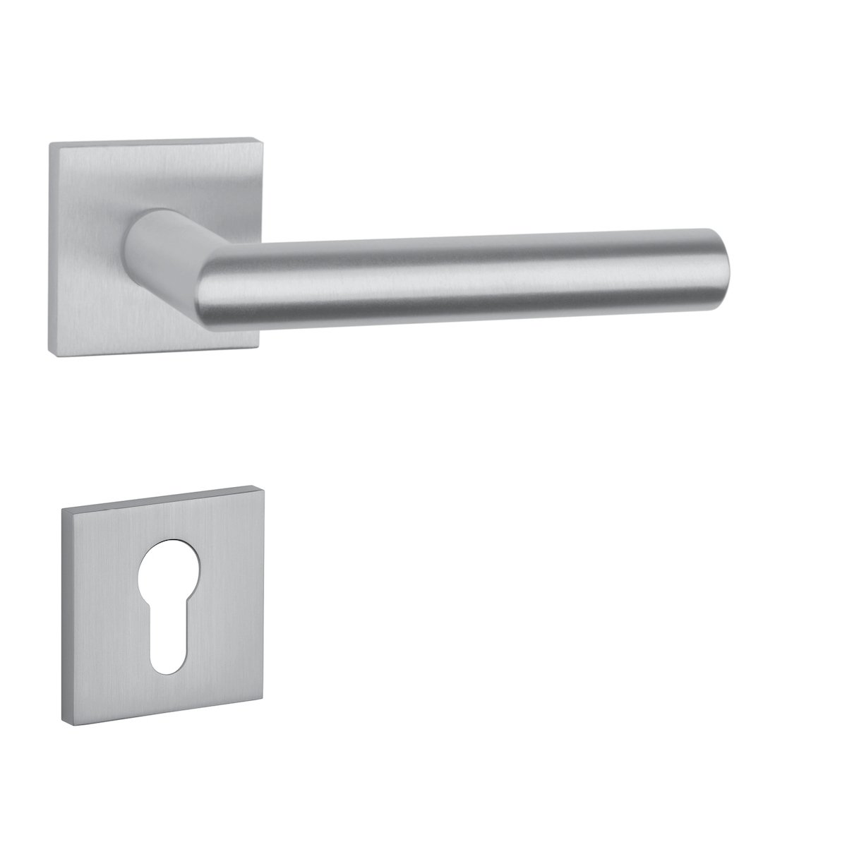 Rozetová klika na interiérové dveře s hranatou rozetou je vyrobena z materiálů vysoké kvality - zamak a je povrchově upravena. Rozeta má rozměr 52x52 mm a tloušťku jen 7 mm. Minimalistický design rozety s vysokou stabilitou kliky na dveřích působí jemně, a tím ponechává prostor pro vyniknutí designu samotné kliky.