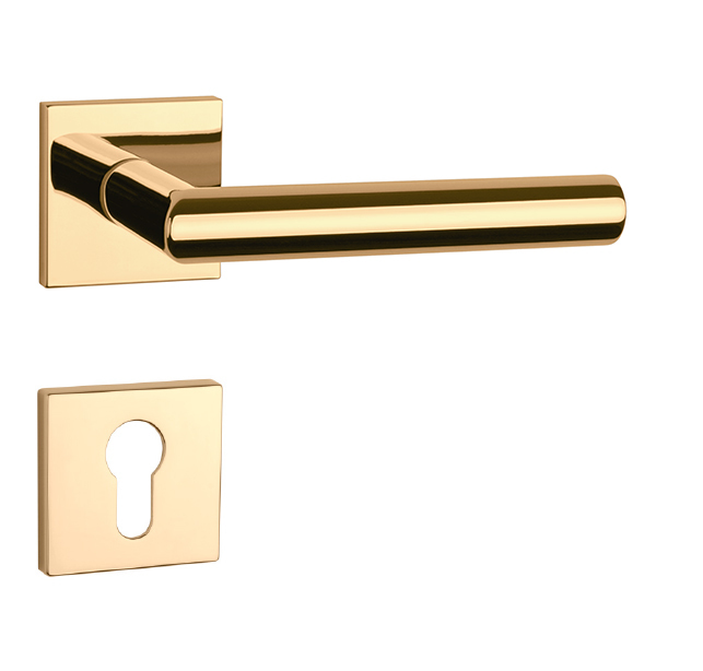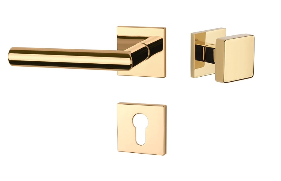 Rozetová klika na interiérové dveře s hranatou rozetou je vyrobena z materiálů vysoké kvality - zamak a je povrchově upravena. Rozeta má rozměr 52x52 mm a tloušťku jen 7 mm. Minimalistický design rozety s vysokou stabilitou kliky na dveřích působí jemně, a tím ponechává prostor pro vyniknutí designu samotné kliky.
