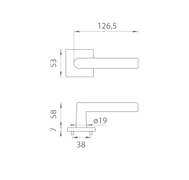 Rozetová klika na interiérové dveře s hranatou rozetou je vyrobena z materiálů vysoké kvality - zamak a je povrchově upravena. Rozeta má rozměr 52x52 mm a tloušťku jen 7 mm. Minimalistický design rozety s vysokou stabilitou kliky na dveřích působí jemně, a tím ponechává prostor pro vyniknutí designu samotné kliky.