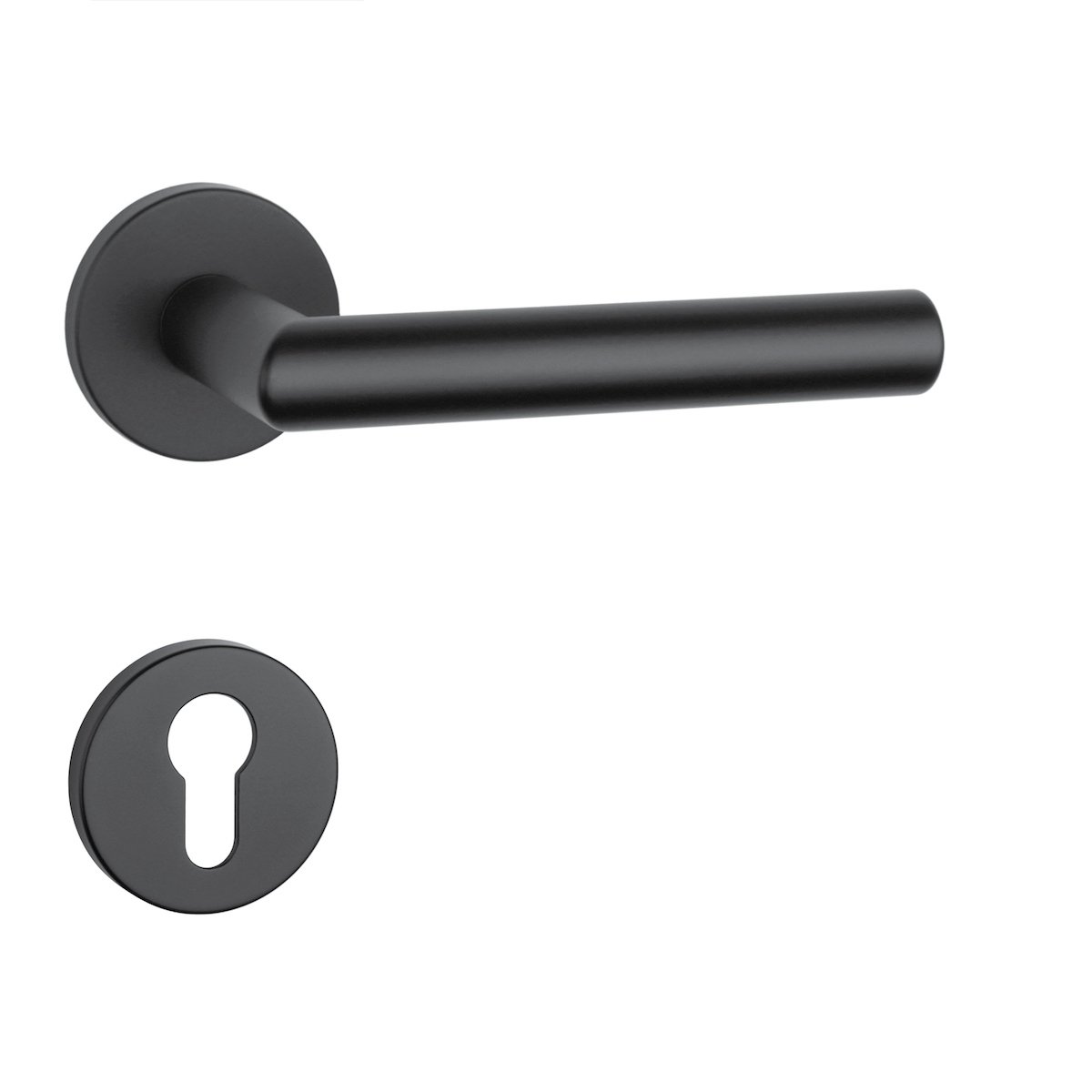 Rozetová klika na interiérové dveře s kulatou rozetou je vyrobena z materiálů vysoké kvality - zamak a je povrchově upravena. Rozeta má průměr 53 mm a tloušťku jen 7 mm. Minimalistický design rozety s vysokou stabilitou kliky na dveřích působí jemně, a tím ponechává prostor pro vyniknutí designu samotné kliky.