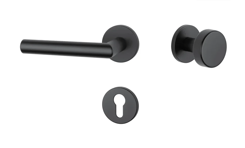 Rozetová klika na interiérové dveře s kulatou rozetou je vyrobena z materiálů vysoké kvality - zamak a je povrchově upravena. Rozeta má průměr 53 mm a tloušťku jen 7 mm. Minimalistický design rozety s vysokou stabilitou kliky na dveřích působí jemně, a tím ponechává prostor pro vyniknutí designu samotné kliky.