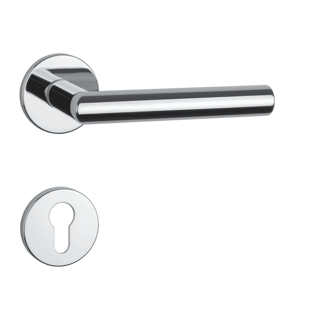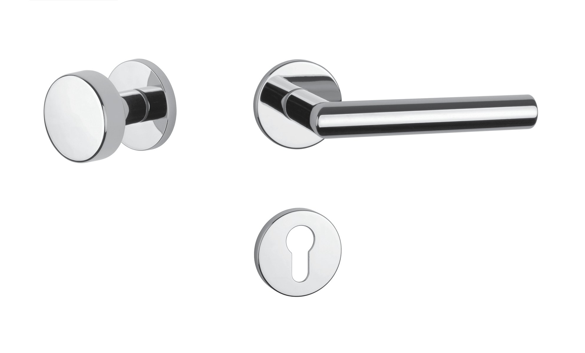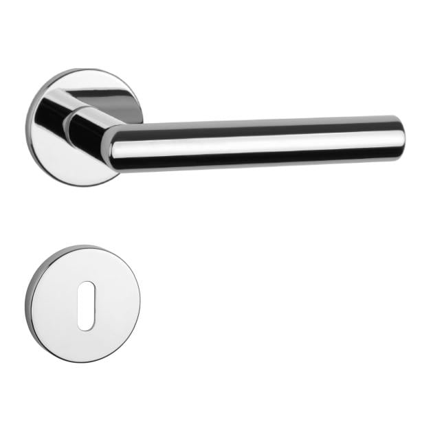 Rozetová klika na interiérové dveře s kulatou rozetou je vyrobena z materiálů vysoké kvality - zamak a je povrchově upravena. Rozeta má průměr 53 mm a tloušťku jen 7 mm. Minimalistický design rozety s vysokou stabilitou kliky na dveřích působí jemně, a tím ponechává prostor pro vyniknutí designu samotné kliky.