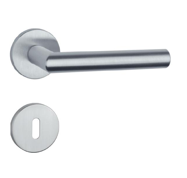 Rozetová klika na interiérové dveře s kulatou rozetou je vyrobena z materiálů vysoké kvality - zamak a je povrchově upravena. Rozeta má průměr 53 mm a tloušťku jen 7 mm. Minimalistický design rozety s vysokou stabilitou kliky na dveřích působí jemně, a tím ponechává prostor pro vyniknutí designu samotné kliky.