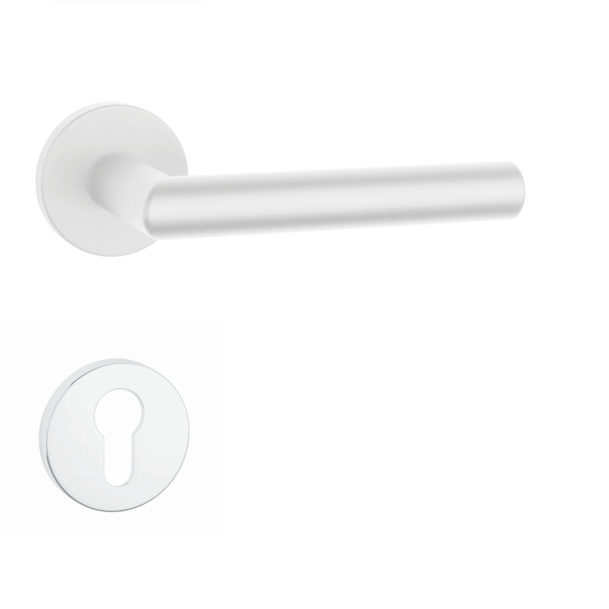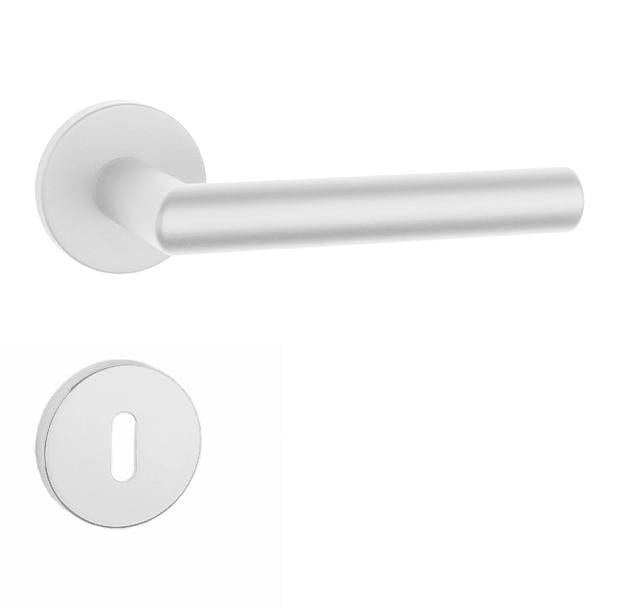 Rozetová klika na interiérové dveře s kulatou rozetou je vyrobena z materiálů vysoké kvality - zamak a je povrchově upravena. Rozeta má průměr 53 mm a tloušťku jen 7 mm. Minimalistický design rozety s vysokou stabilitou kliky na dveřích působí jemně, a tím ponechává prostor pro vyniknutí designu samotné kliky.