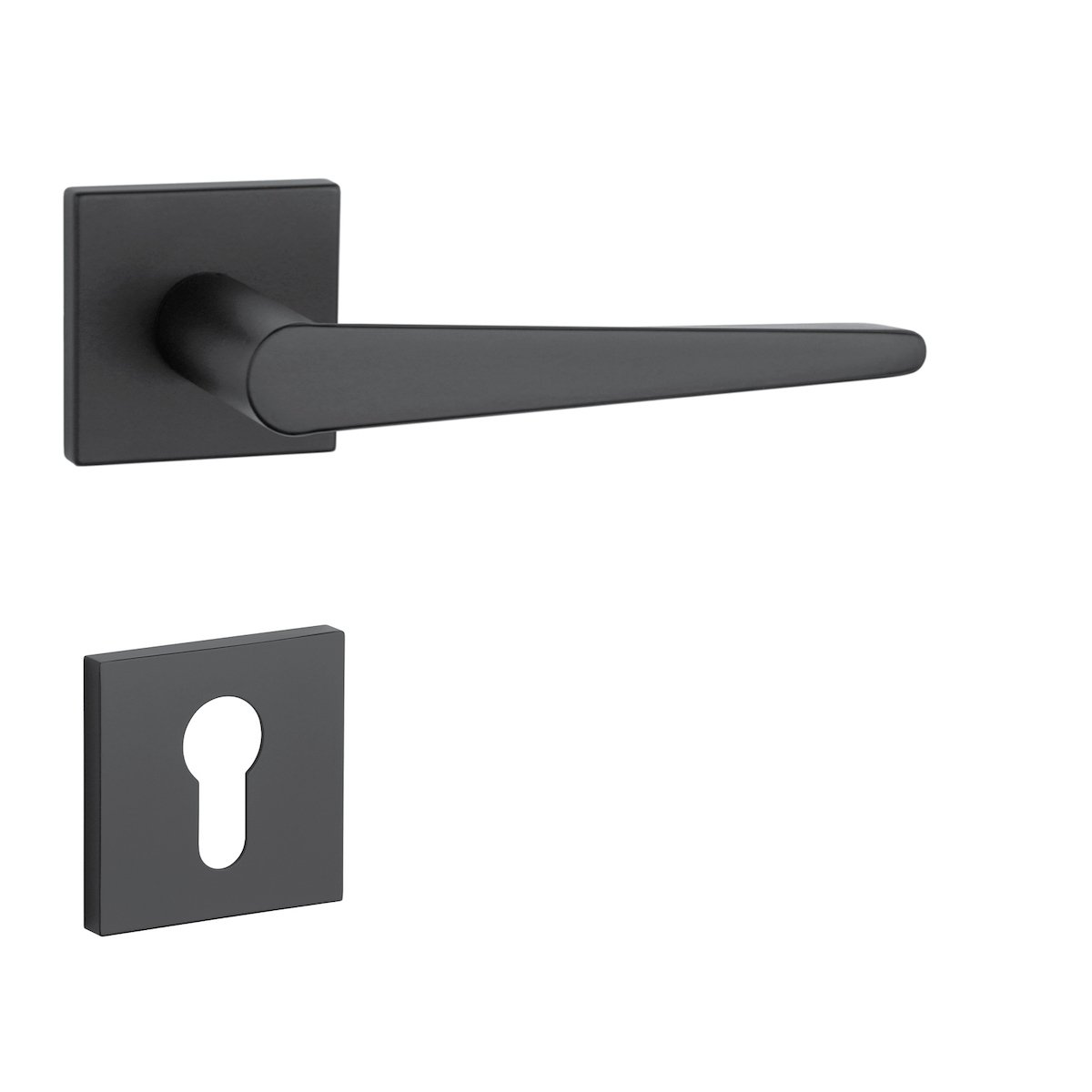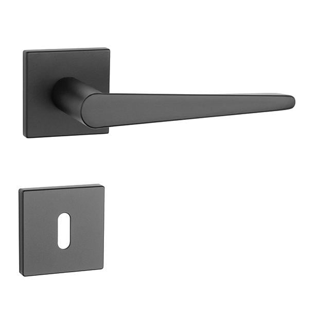 Rozetová klika na interiérové dveře s hranatou rozetou je vyrobena z materiálů vysoké kvality - zamak a je povrchově upravena. Rozeta má rozměr 52x52 mm a tloušťku jen 7 mm. Minimalistický design rozety s vysokou stabilitou kliky na dveřích působí jemně, a tím ponechává prostor pro vyniknutí designu samotné kliky.