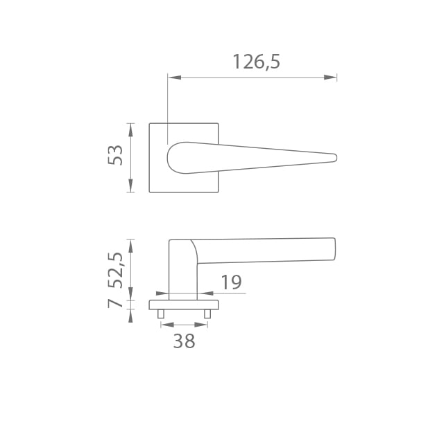 Rozetová klika na interiérové dveře s hranatou rozetou je vyrobena z materiálů vysoké kvality - zamak a je povrchově upravena. Rozeta má rozměr 52x52 mm a tloušťku jen 7 mm. Minimalistický design rozety s vysokou stabilitou kliky na dveřích působí jemně, a tím ponechává prostor pro vyniknutí designu samotné kliky.