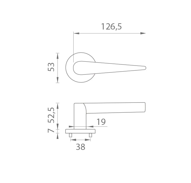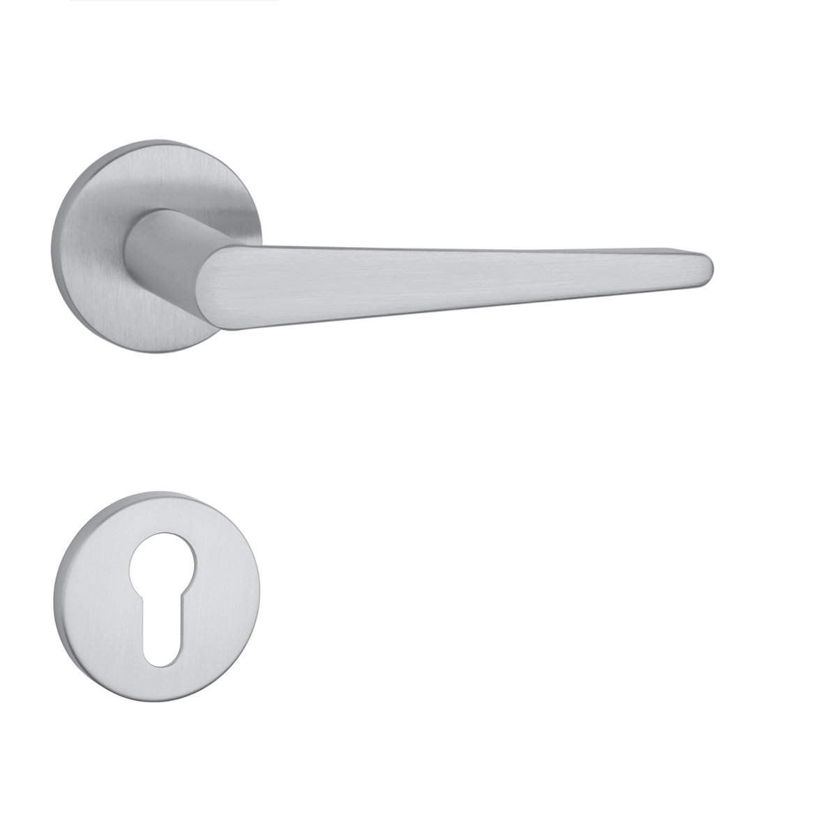 Rozetová klika na interiérové dveře s kulatou rozetou je vyrobena z materiálů vysoké kvality - zamak a je povrchově upravena. Rozeta má průměr 52 mm a tloušťku jen 7 mm.