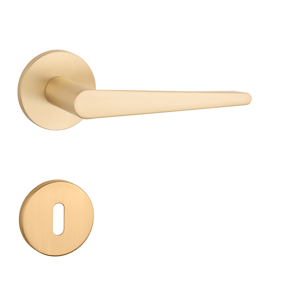Rozetová klika na interiérové dveře s kulatou rozetou je vyrobena z materiálů vysoké kvality - zamak a je povrchově upravena. Rozeta má průměr 52 mm a tloušťku jen 7 mm.