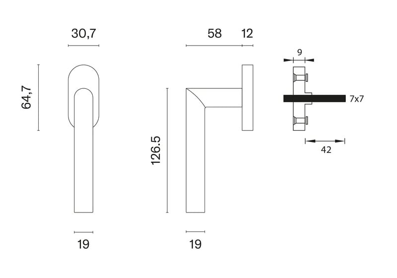 Rozeta má rozměry 64,5 x 30 mm a tloušťku 12 mm.