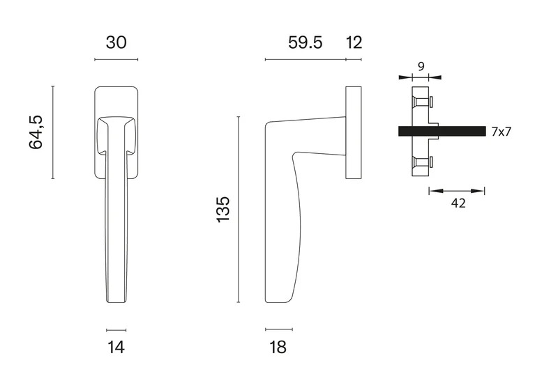 Rozeta má rozměry 64,5 x 30 mm a tloušťku 12 mm.