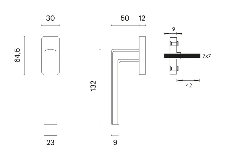 Rozeta má rozměry 64,5 x 30 mm a tloušťku 12 mm.