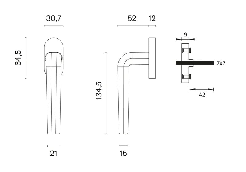 Rozeta má rozměry 64,5 x 30 mm a tloušťku 12 mm.