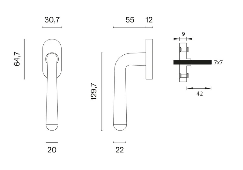 Rozeta má rozměry 64,5 x 30 mm a tloušťku 12 mm.