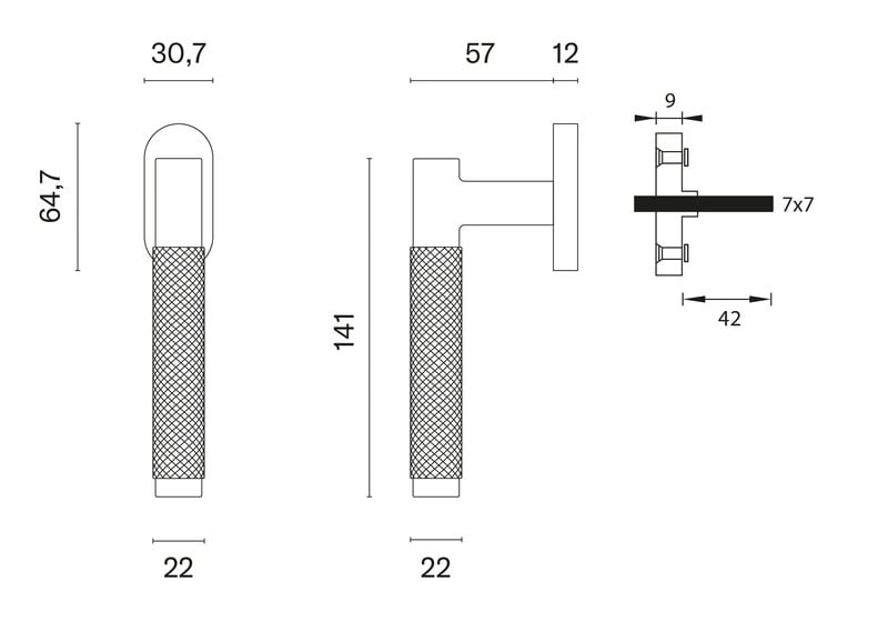 Rozeta má rozměry 64,5 x 30 mm a tloušťku 12 mm.