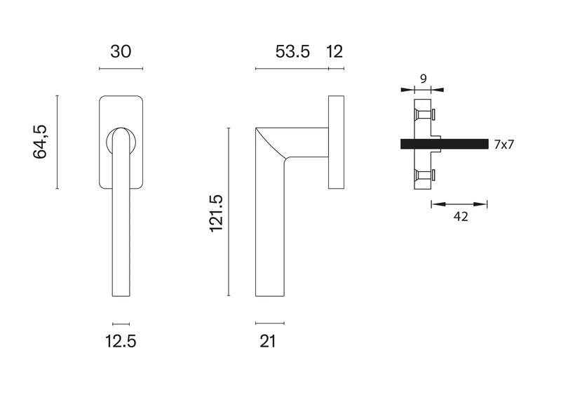 Rozeta má rozměry 64,5 x 30 mm a tloušťku 12 mm.