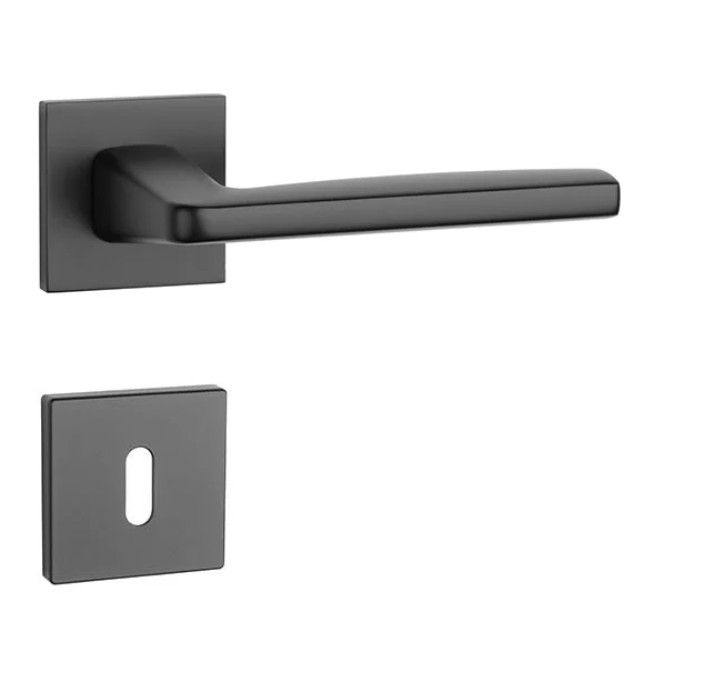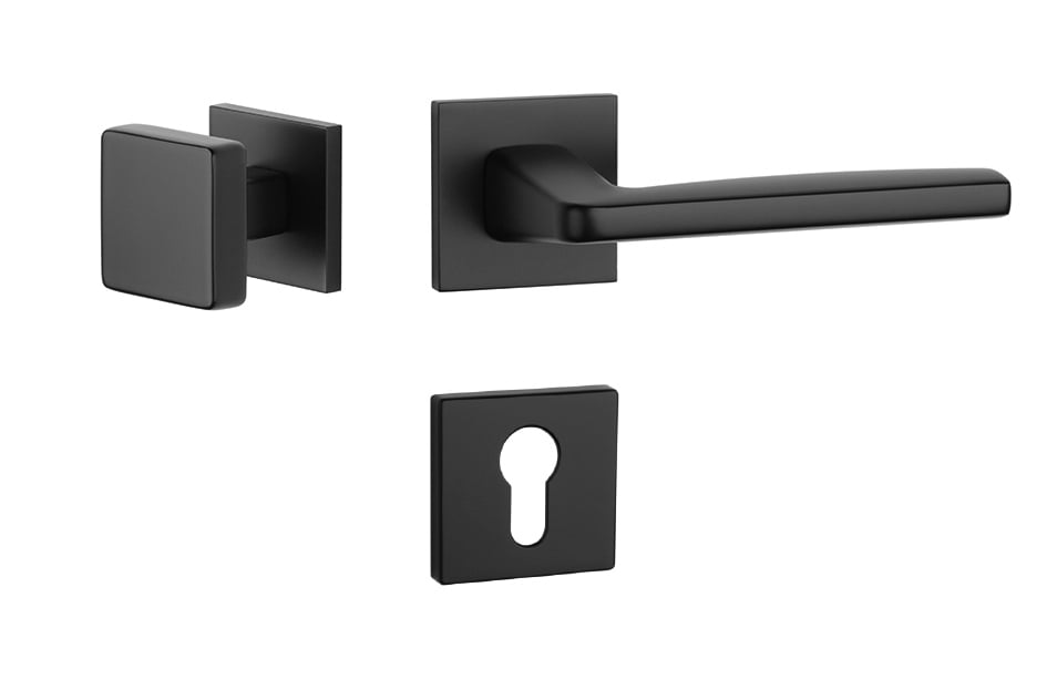 Rozetová klika na interiérové dveře s hranatou rozetou je vyrobena z materiálů vysoké kvality - zamak a je povrchově upravena. Rozeta má rozměr 52x52 mm a tloušťku jen 7 mm. Minimalistický design rozety s vysokou stabilitou kliky na dveřích působí jemně, a tím ponechává prostor pro vyniknutí designu samotné kliky.