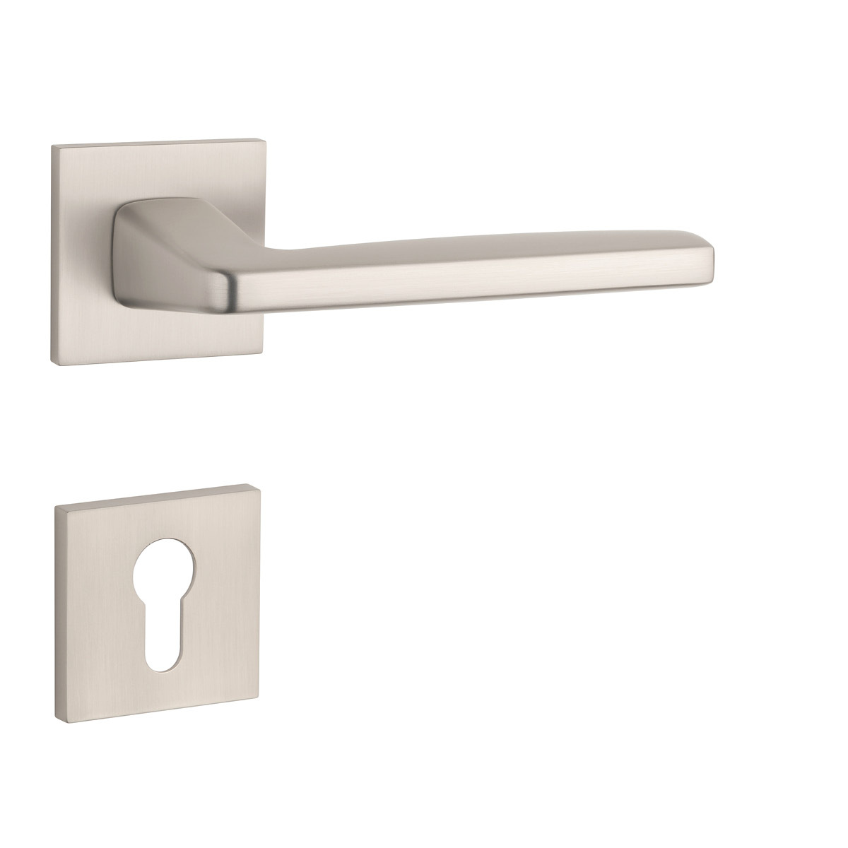 Rozetová klika na interiérové dveře s hranatou rozetou je vyrobena z materiálů vysoké kvality - zamak a je povrchově upravena. Rozeta má rozměr 53x53 mm a tloušťku jen 7 mm. Minimalistický design rozety s vysokou stabilitou kliky na dveřích působí jemně, a tím ponechává prostor pro vyniknutí designu samotné kliky.