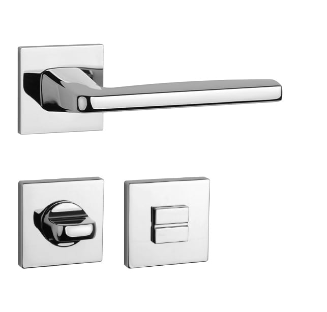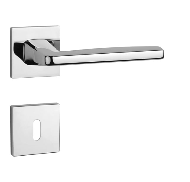 Rozetová klika na interiérové dveře s hranatou rozetou je vyrobena z materiálů vysoké kvality - zamak a je povrchově upravena. Rozeta má rozměr 52x52 mm a tloušťku jen 7 mm. Minimalistický design rozety s vysokou stabilitou kliky na dveřích působí jemně, a tím ponechává prostor pro vyniknutí designu samotné kliky.
