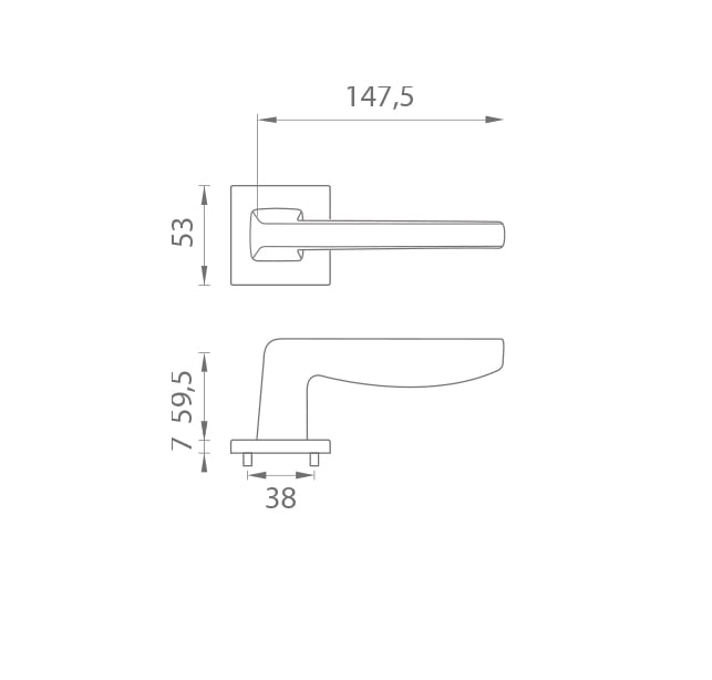Rozetová klika na interiérové dveře s hranatou rozetou je vyrobena z materiálů vysoké kvality - zamak a je povrchově upravena. Rozeta má rozměr 52x52 mm a tloušťku jen 7 mm. Minimalistický design rozety s vysokou stabilitou kliky na dveřích působí jemně, a tím ponechává prostor pro vyniknutí designu samotné kliky.
