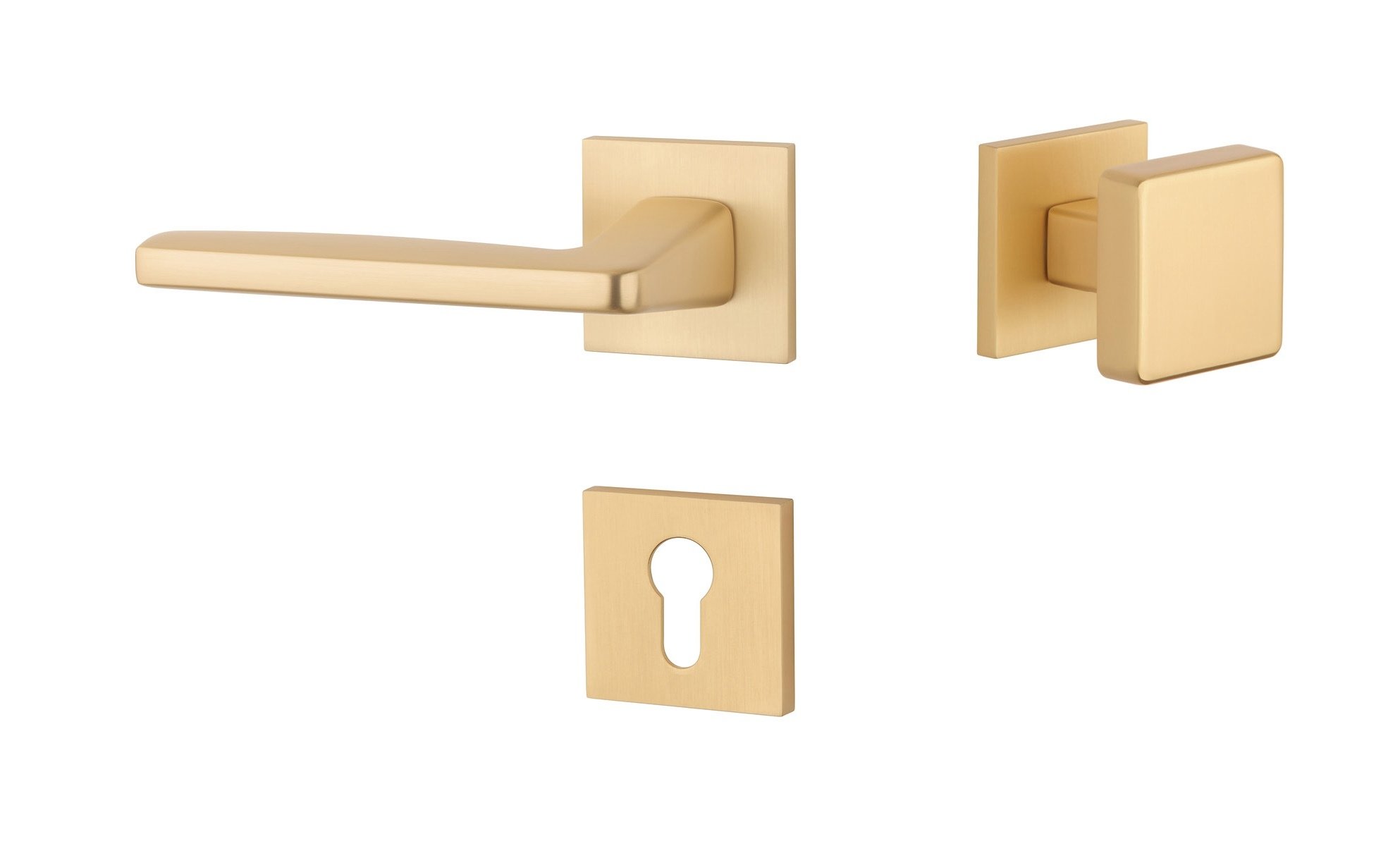 Rozetová klika na interiérové dveře s hranatou rozetou je vyrobena z materiálů vysoké kvality - zamak a je povrchově upravena. Rozeta má rozměr 53x53 mm a tloušťku jen 7 mm. Minimalistický design rozety s vysokou stabilitou kliky na dveřích působí jemně, a tím ponechává prostor pro vyniknutí designu samotné kliky.