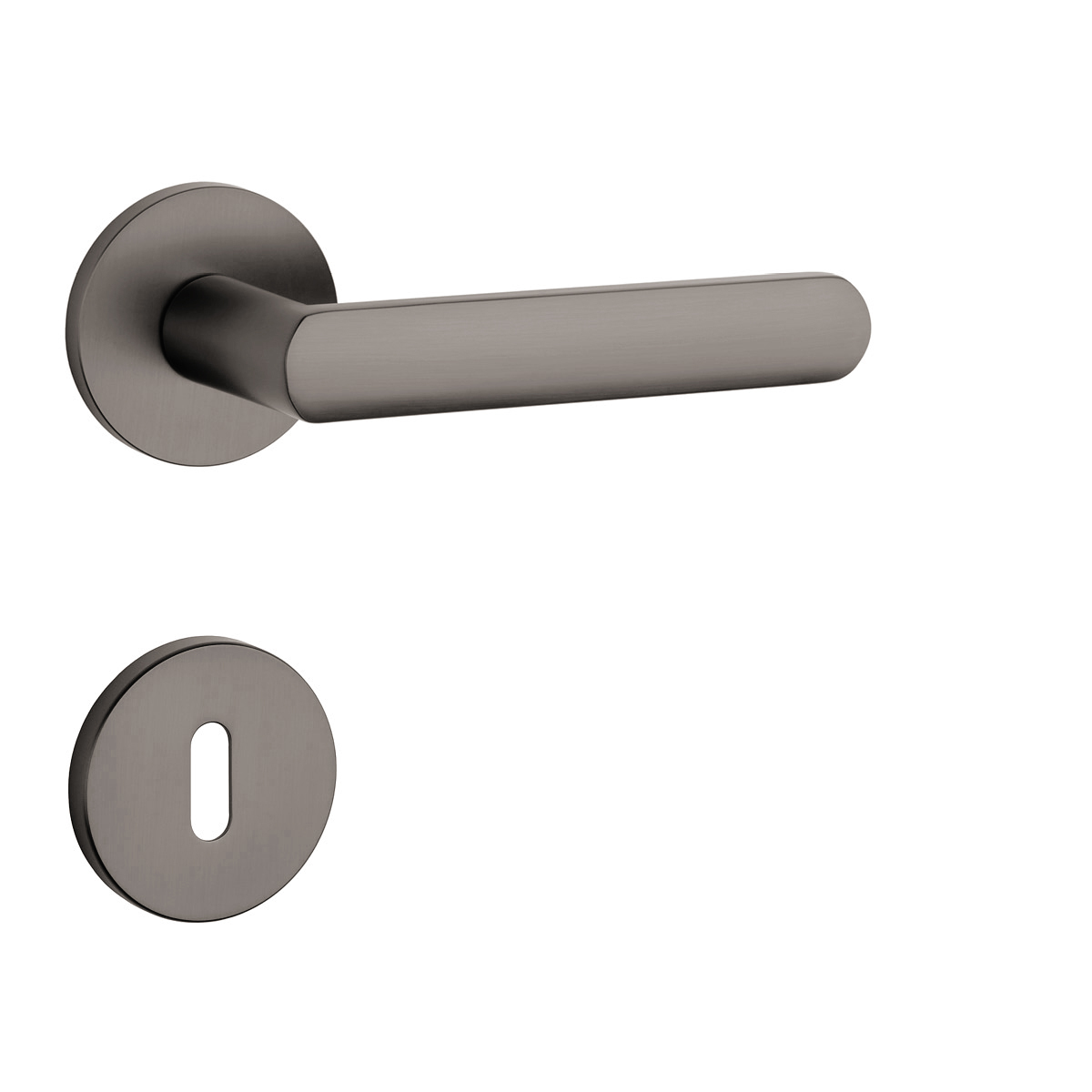 Rozetová klika na interiérové dveře s kulatou rozetou je vyrobena z materiálů vysoké kvality - zamak a je povrchově upravena. Rozeta má průměr 52 mm a tloušťku jen 7 mm. Minimalistický design rozety s vysokou stabilitou kliky na dveřích působí jemně, a tím ponechává prostor pro vyniknutí designu samotné kliky.