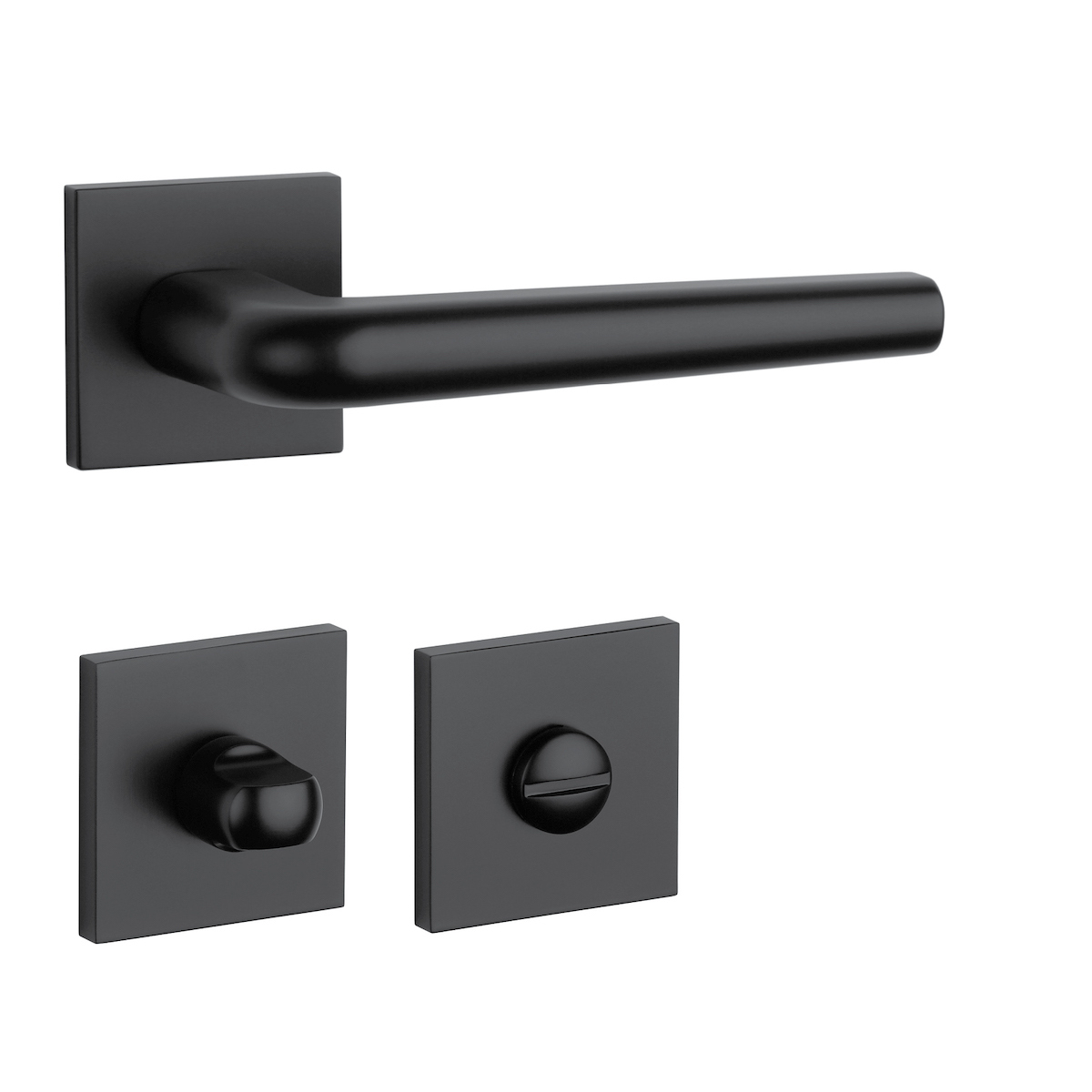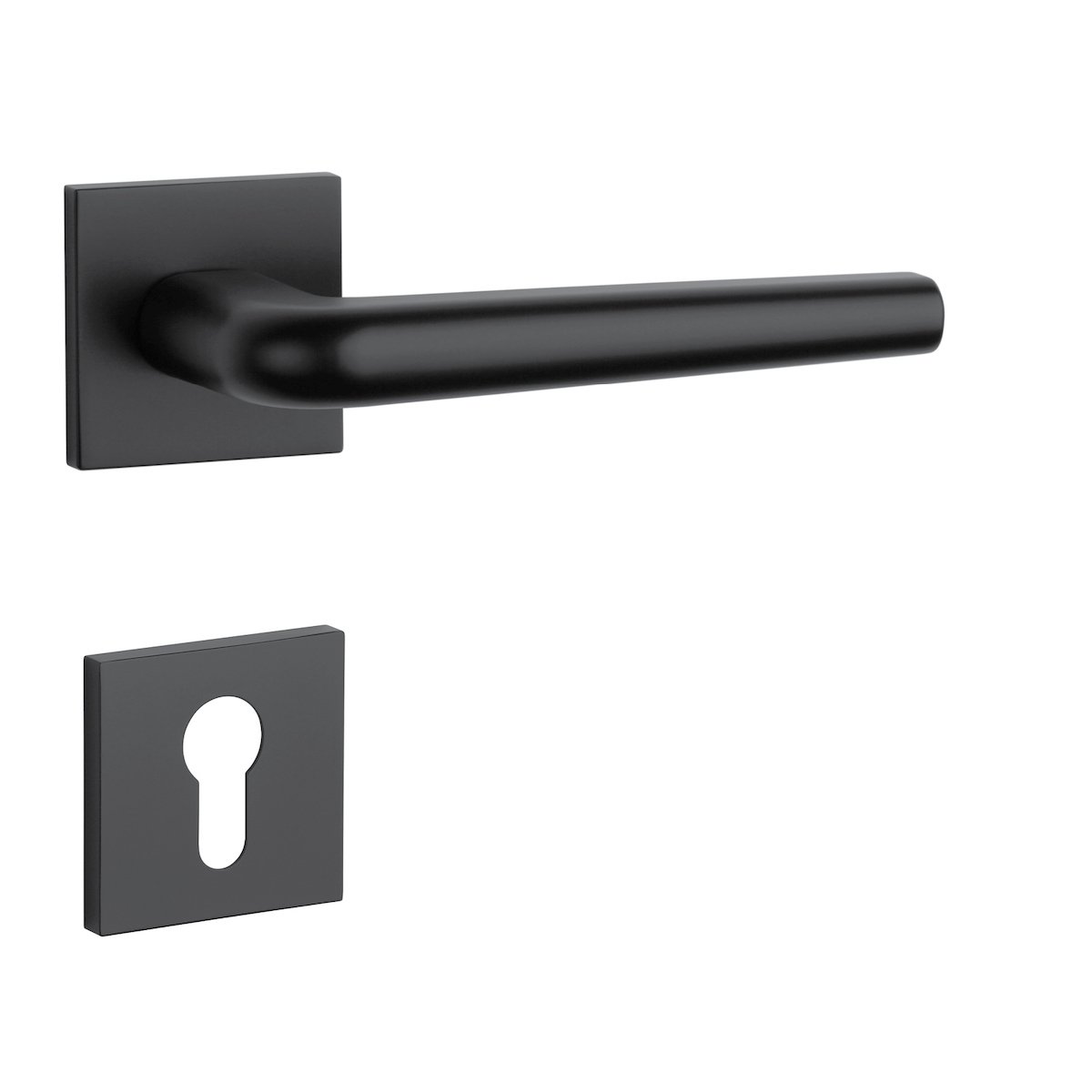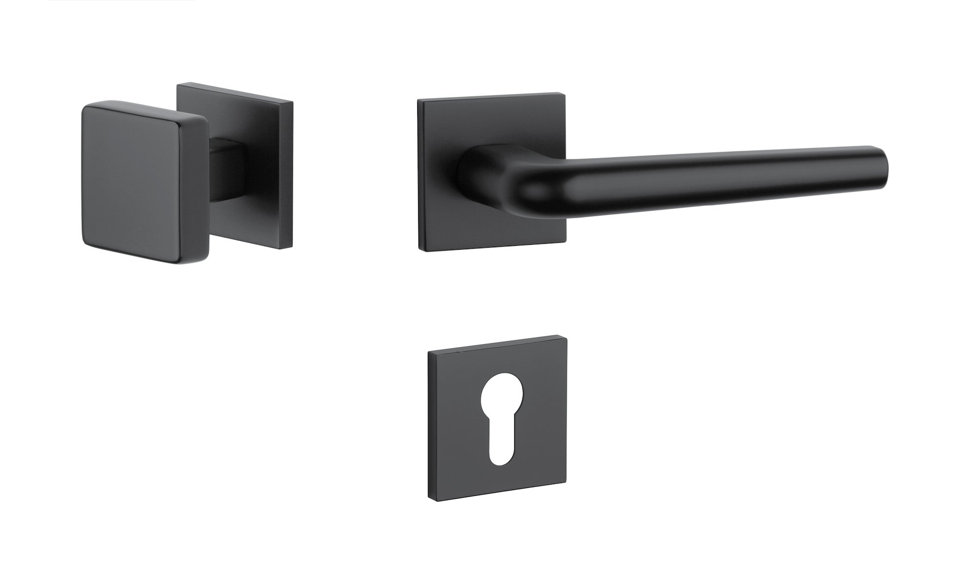 Rozetová klika na interiérové dveře s hranatou rozetou je vyrobena z materiálů vysoké kvality - zamak a je povrchově upravena. Rozeta má rozměr 52x52 mm a tloušťku jen 7 mm.