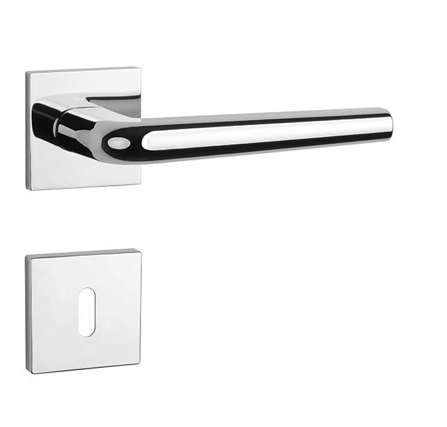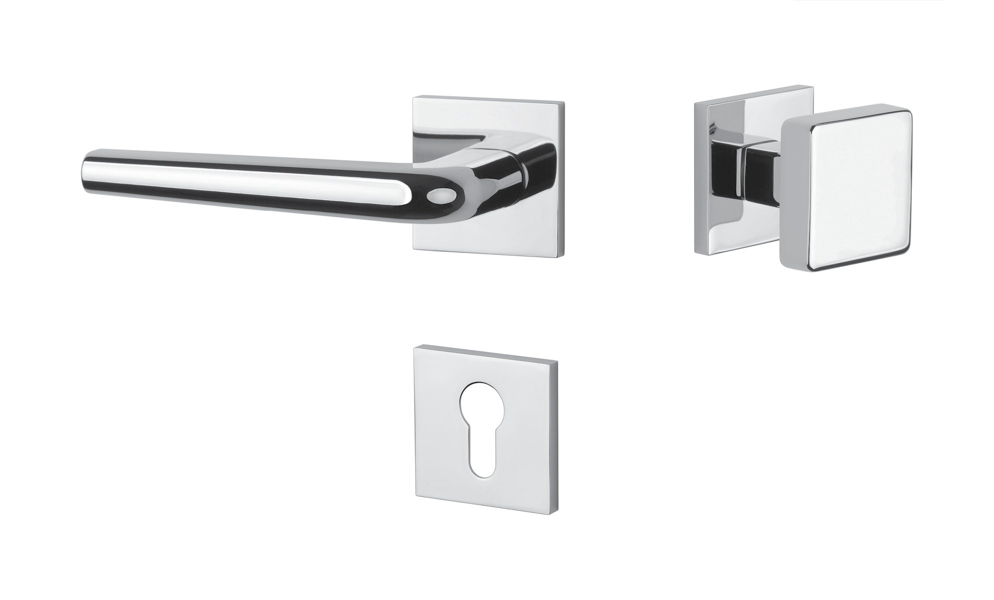 Rozetová klika na interiérové dveře s hranatou rozetou je vyrobena z materiálů vysoké kvality - zamak a je povrchově upravena. Rozeta má rozměr 52x52 mm a tloušťku jen 7 mm.
