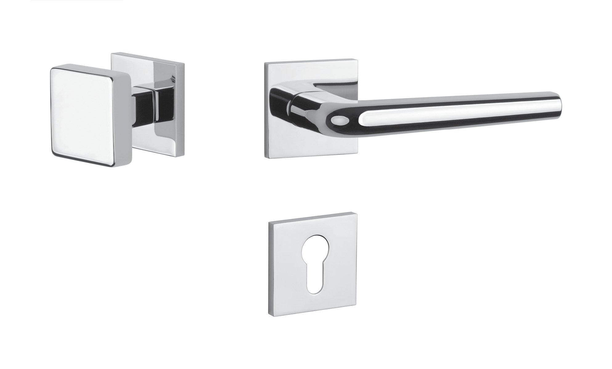 Rozetová klika na interiérové dveře s hranatou rozetou je vyrobena z materiálů vysoké kvality - zamak a je povrchově upravena. Rozeta má rozměr 52x52 mm a tloušťku jen 7 mm.