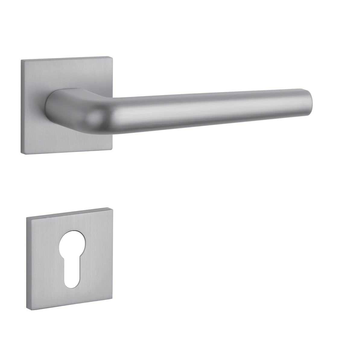 Rozetová klika na interiérové dveře s hranatou rozetou je vyrobena z materiálů vysoké kvality - zamak a je povrchově upravena. Rozeta má rozměr 52x52 mm a tloušťku jen 7 mm.