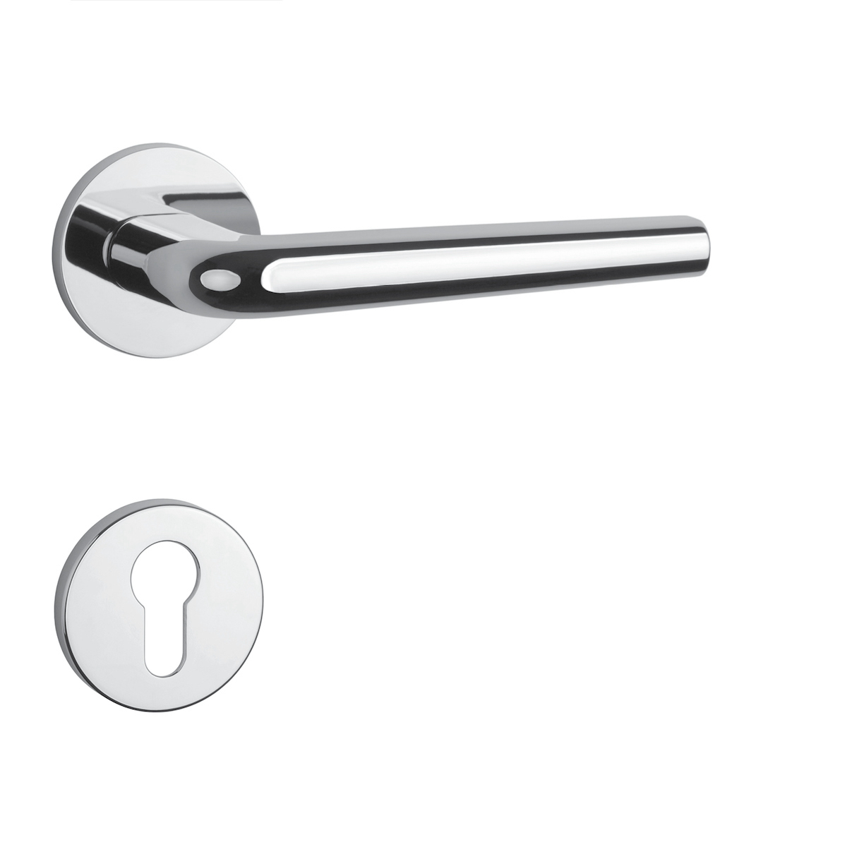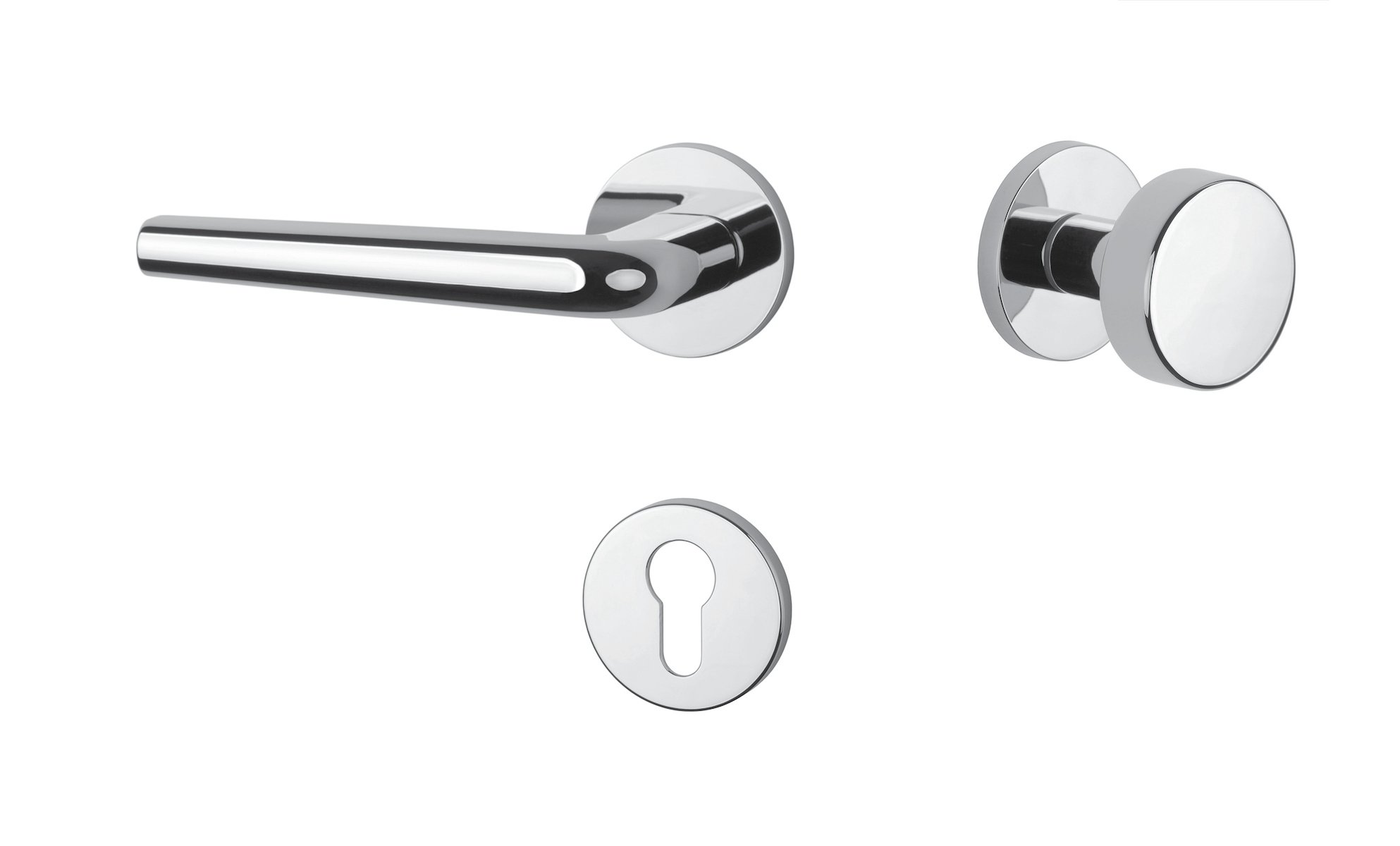 Rozetová klika na interiérové dveře s kulatou rozetou je vyrobena z materiálů vysoké kvality - zamak a je povrchově upravena. Rozeta má průměr 52 mm a tloušťku jen 7 mm.