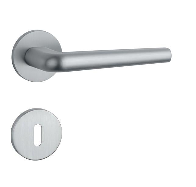 Rozetová klika na interiérové dveře s kulatou rozetou je vyrobena z materiálů vysoké kvality - zamak a je povrchově upravena. Rozeta má průměr 52 mm a tloušťku jen 7 mm.