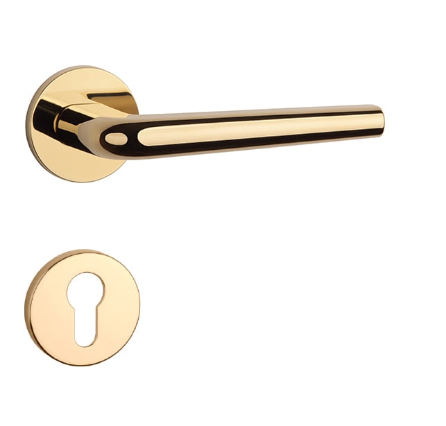 Rozetová klika na interiérové dveře s kulatou rozetou je vyrobena z materiálů vysoké kvality - zamak a je povrchově upravena. Rozeta má průměr 52 mm a tloušťku jen 7 mm. Minimalistický design rozety s vysokou stabilitou kliky na dveřích působí jemně, a tím ponechává prostor pro vyniknutí designu samotné kliky.