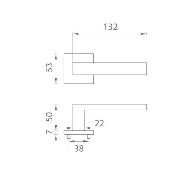 Rozetová klika na interiérové dveře s hranatou rozetou je vyrobena z materiálů vysoké kvality - zamak a je povrchově upravena. Rozeta má rozměr 52x52 mm a tloušťku jen 7 mm. Minimalistický design rozety s vysokou stabilitou kliky na dveřích působí jemně, a tím ponechává prostor pro vyniknutí designu samotné kliky.